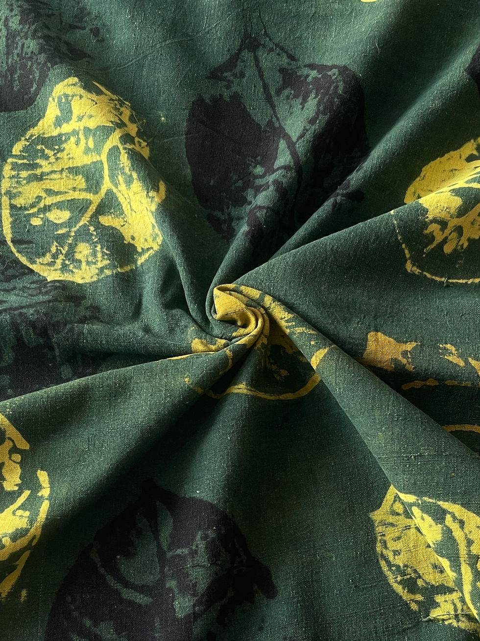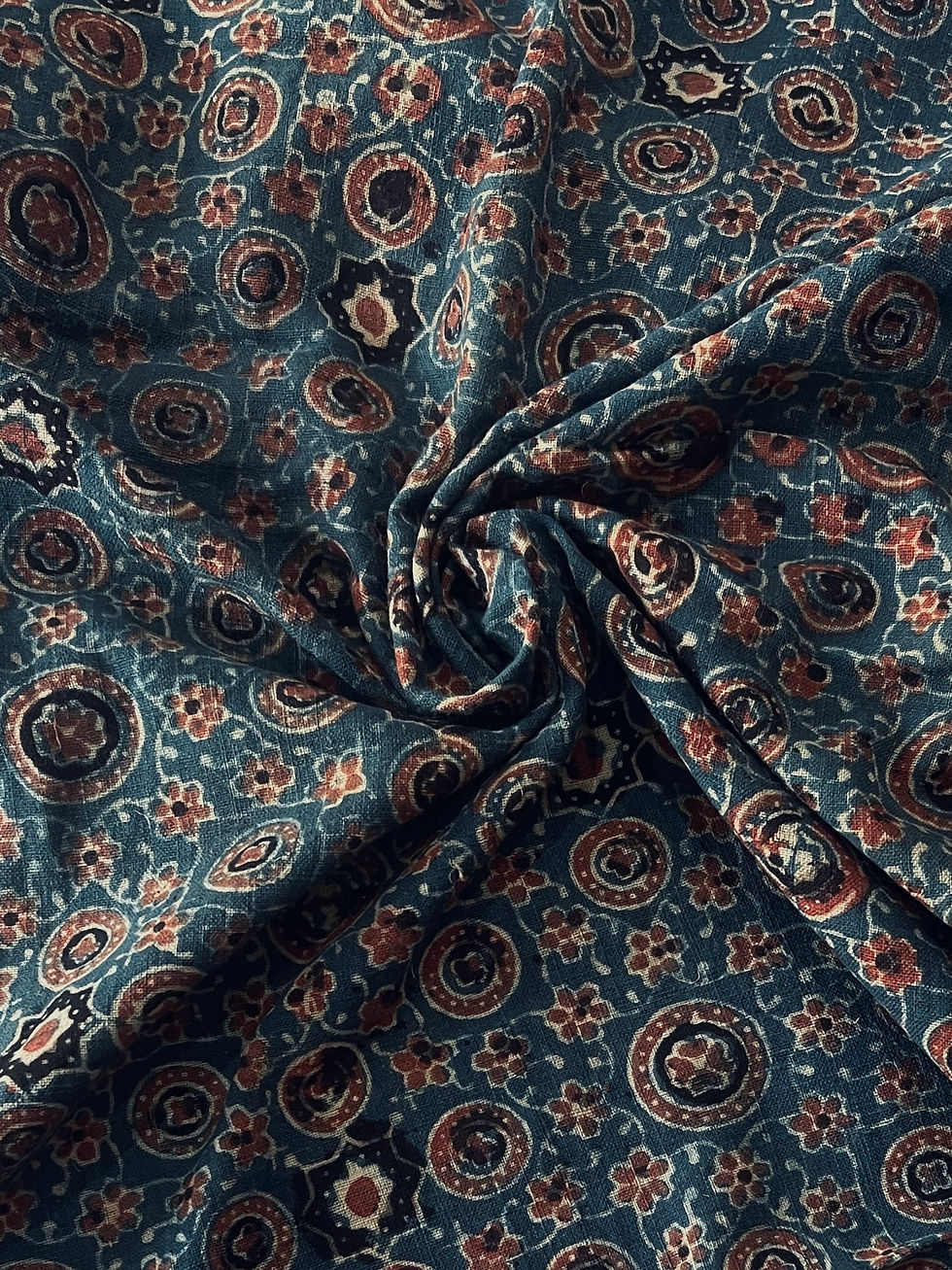 This fabric is made entirely using a hand crafted process—from spinning the threads on a charkha (spinning wheel) to weaving on handloom. Beautiful kurtas, dresses and other garments can be made from this soft , eco-friendly and naturally dyed fabric.